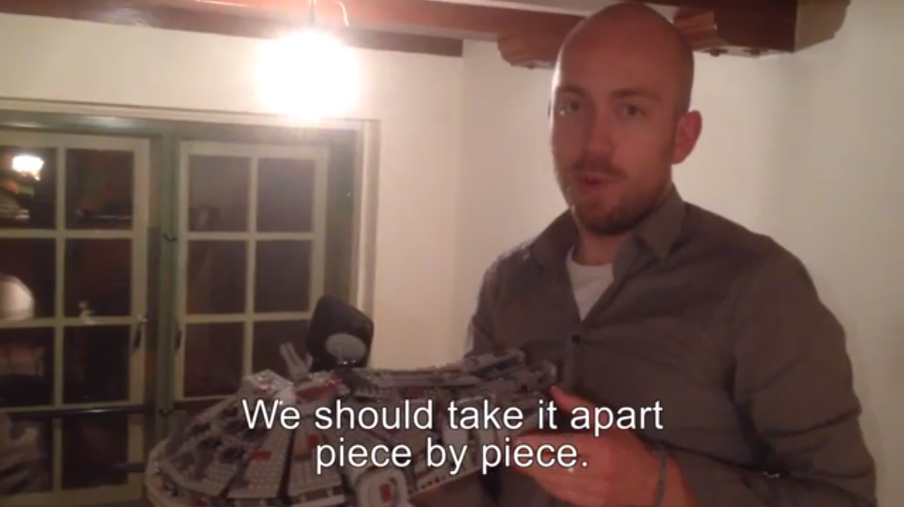 After Michael invested all day putting together the 1,200+ LEGO Millennium Falcon, his friends Joost Reijmers and Thomas, thought it would be fun to prank and completely disassemble Michael’s Millennium Falcon.