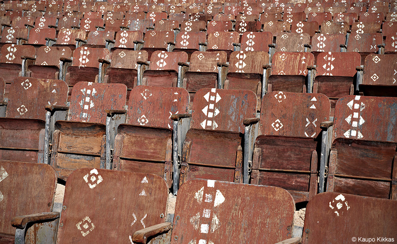Estonian photographer Kaupo Kikkas, discovered an abandoned outdoor cinema in the middle of the Sinai desert in Egypt. According to the stories told to Kikkas, the outdoor cinema was built over a decade ago by a wealthy Frenchman Dynn Eadel, who thought it was a brilliant location for a cinema. In Cairo, Eadel bought 150 wooden chairs and a projector from an old theatre. He hauled in a generator for electricity and a tractor to pull up a giant screen.