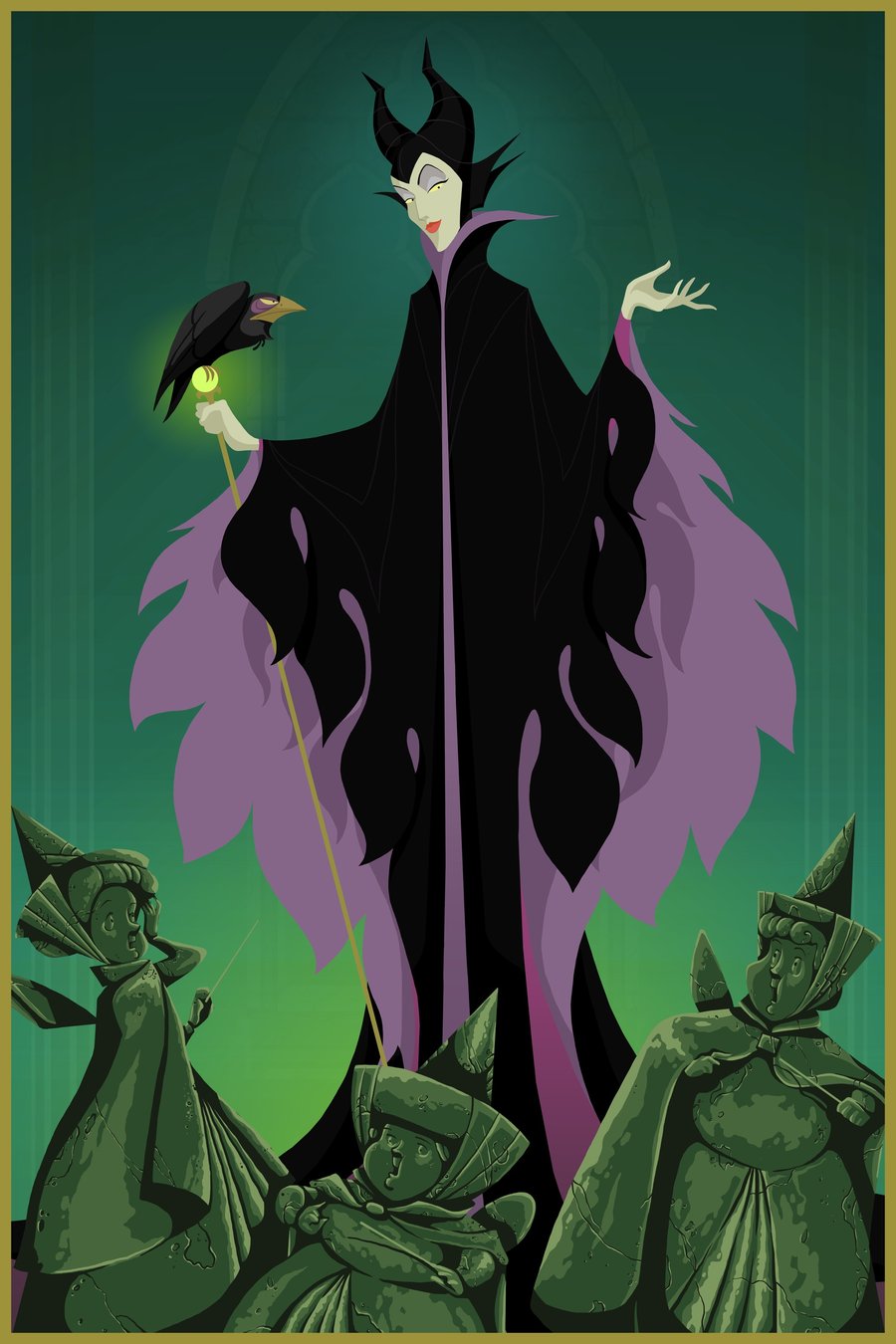 Disney fairy tales always end with “Happily Ever After,” but what if the Villains had their happy ending? “I wanted to do a little series of Disney Villains in a much happier ending for them, rather than the story line in the films,” says artist Justin McTwisp.