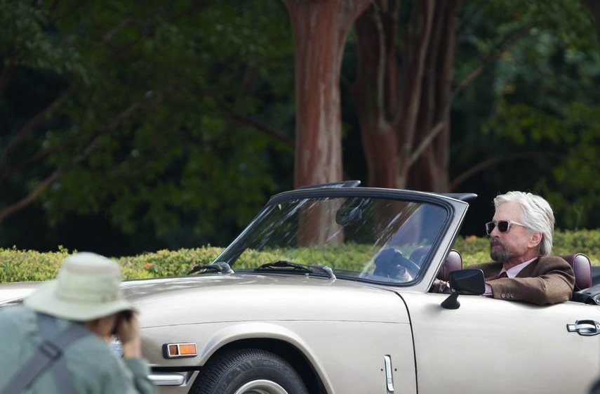 Earlier this week, Michael Douglas was spotted on the Atlanta set of Marvel’s ‘Ant-Man,’ looking very dapper as Dr. Hank Pym and driving a convertible. Take a look.