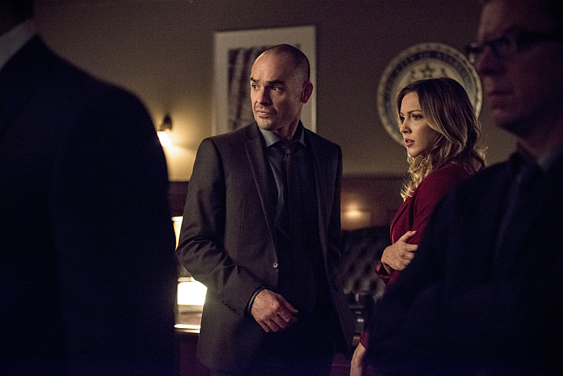 Arrow — “Midnight City” — Image AR311B_0155b — Pictured (L-R): Paul Blackthorne as Quentin Lance and Katie Cassidy as Laurel Lance — Photo: Cate Cameron/The CW — é 2015 The CW Network, LLC. All Rights Reserved.