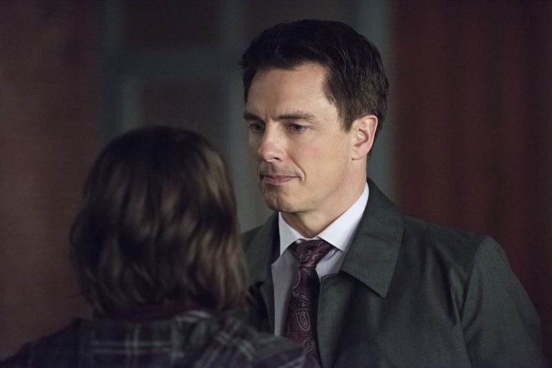 Arrow — “Canaries” — Image AR313C_0425b — Pictured (L-R): Willa Holland as Thea Queen and John Barrowman as Malcolm Merlyn — Photo: Dean Buscher/The CW — é 2015 The CW Network, LLC. All Rights Reserved.