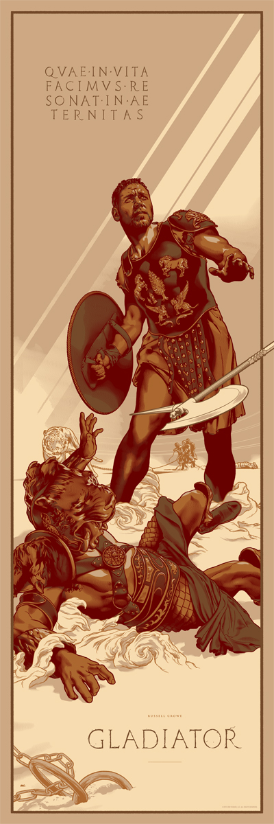 15 years ago Ridley Scott’s epic movie ‘Gladiator’ starring Russell Crowe was released. Uruguayan artist Martin Ansin created these two stunning prints for Mondo to celebrate the 15th anniversary of the film.