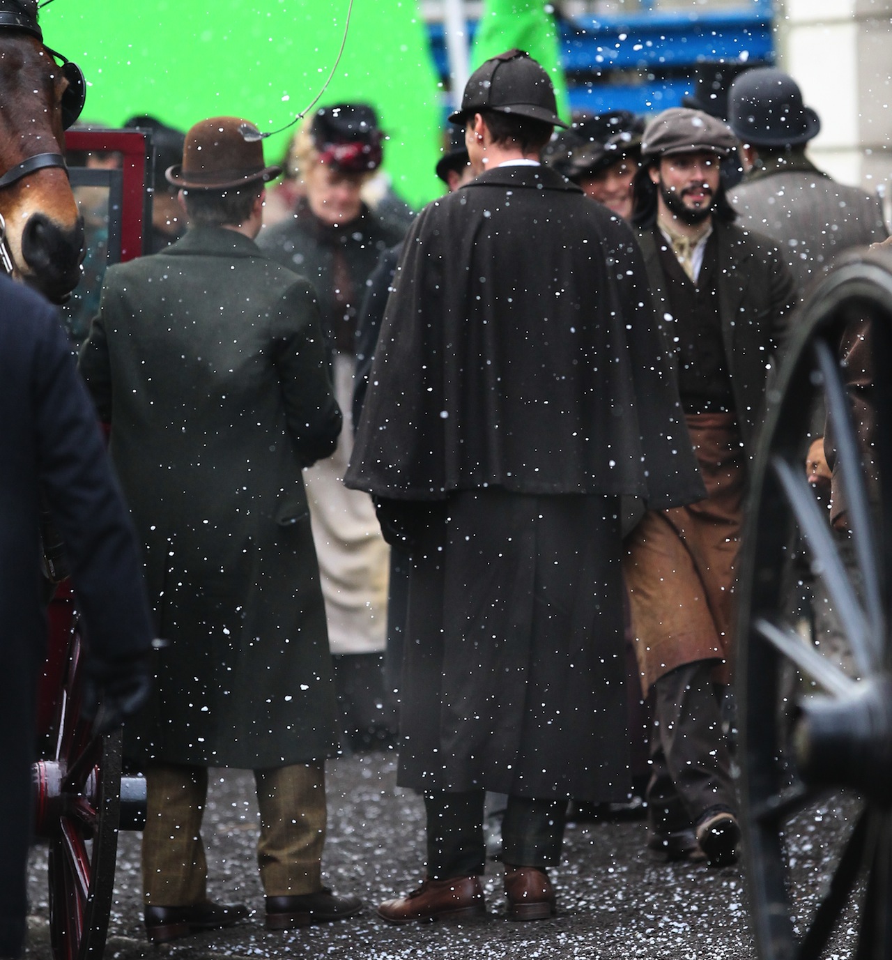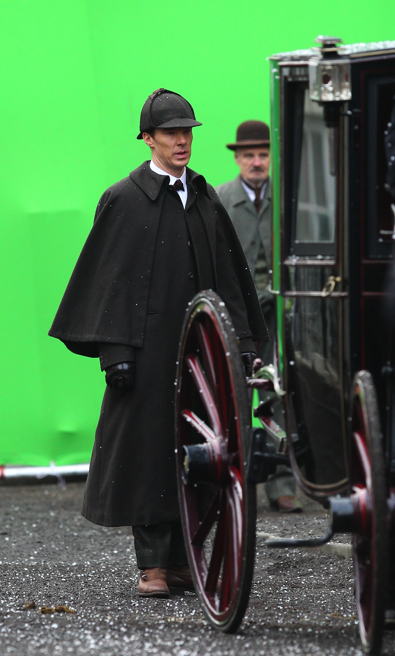 Here are some new photos of Benedict Cumberbatch and Martin Freeman on the set of Sherlock’s Christmas Special.