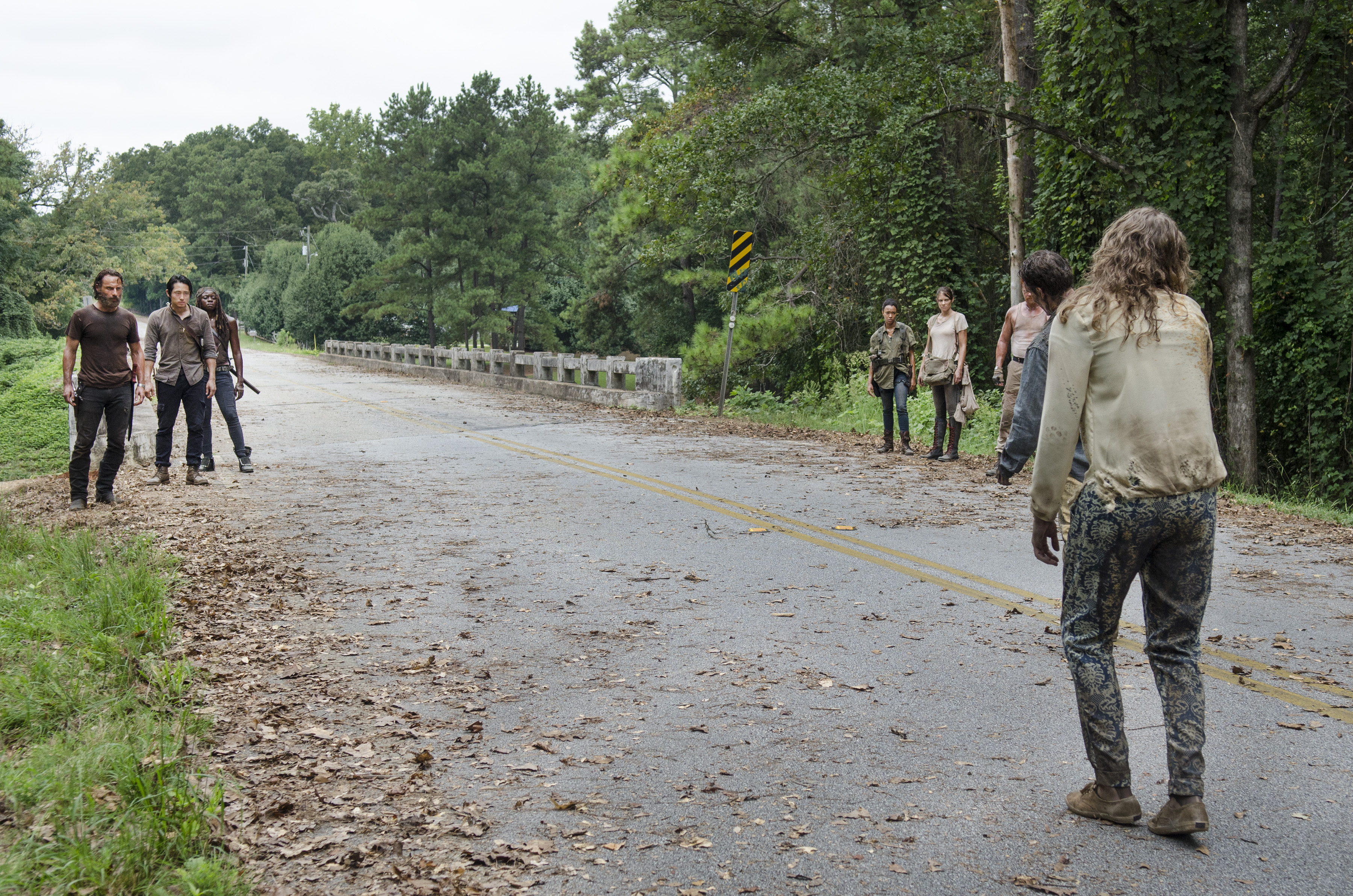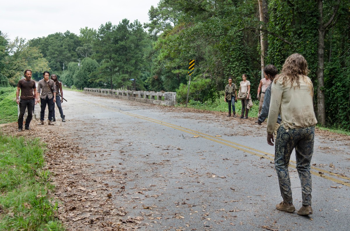 Andrew Lincoln as Rick Grimes, Steven Yeun as Glenn Rhee, Danai Gurira as Michonne, Sonequa Martin-Green as Sasha and Lauren Cohan as Maggie Greene – The Walking Dead _ Season 5, Episode 10 – Photo Credit: Gene Page/AMC