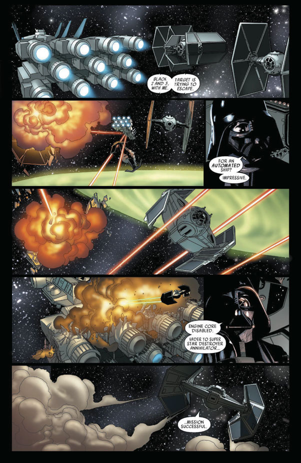 The original Dark Lord of the Sith stars in his first ongoing series! Ever since Darth Vader made his first on-screen appearance, he became the one of the most popular villains to ever haunt an audience’s dreams! Now, follow Vader straight from the ending of A NEW HOPE (and the pages of the new STAR WARS comic book) into his own series, showing the Empire’s war with the Rebel Alliance from the other side! Writer Kieron Gillen (Uncanny X-Men, Journey Into Mystery, Iron Man) and artist Salvador Larroca (Invincible Iron Man, X-Men: No More Humans) bring us a peek behind the mask of evil!