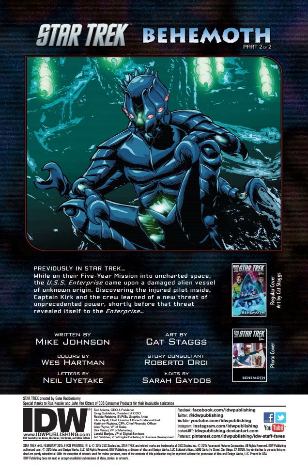 “Behemoth,” part 2 of 2: In the epic finale of “Behemoth”, the crew of the Enterprise faces an alien threat unlike any they have encountered before – in any timeline! It’s a race against time to save the ship or be stranded in uncharted space! Don’t miss this all-new adventure overseen by STAR TREK writer/producer Roberto Orci, director of the new movie!