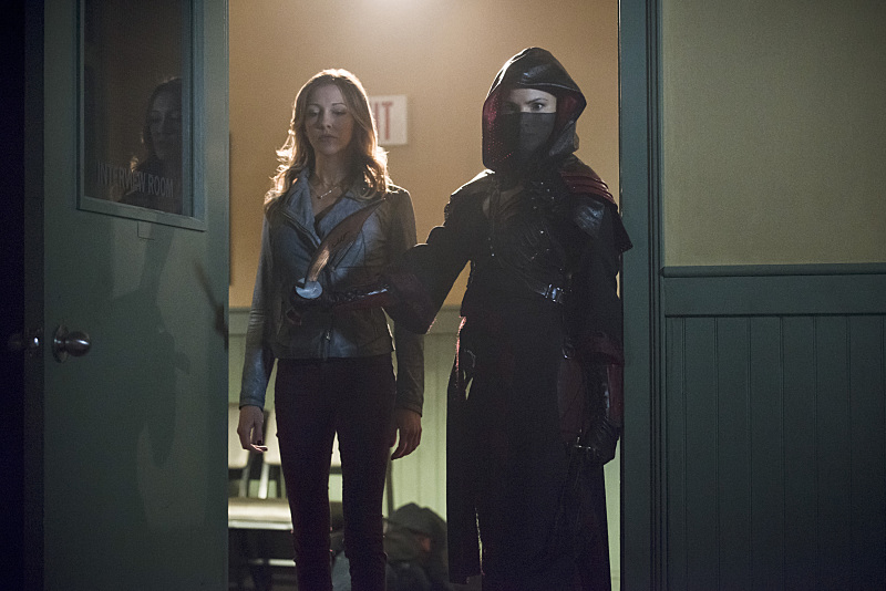 Arrow — “The Offer” — Image AR316A_0073b — Pictured (L-R): Katie Cassidy as Laurel Lance and Katrina Law as Nyssa al Ghul — Photo: Diyah Pera/The CW — é 2015 The CW Network, LLC. All Rights Reserved.
