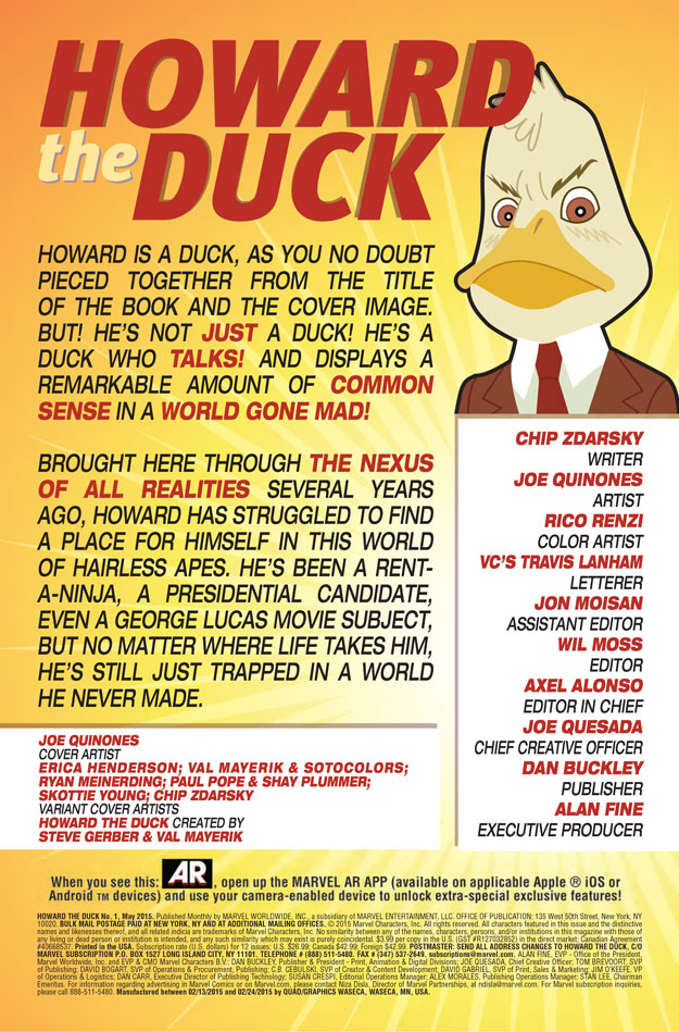 HOWARD THE DUCK #1_1 Previous Next Published March 8, 2015 at 625 × 949 in Comics: HOWARD THE DUCK #1 Preview