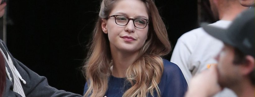 Melissa Benoist was spotted on the set of ‘Supergirl’ in Los Angeles. From looking at all the photos, it looks like the glasses are part of Kara’s wardrobe, similar disguise like her cousin Clark Kent.