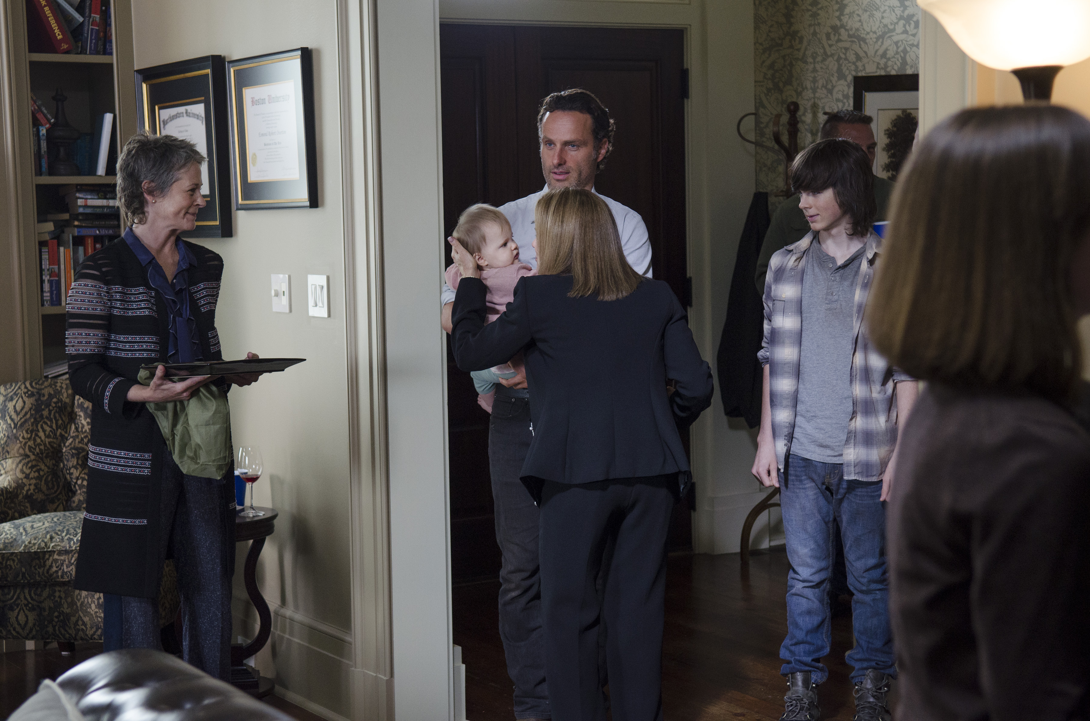 Melissa McBride as Carol Peletier, Andrew Lincoln as Rick Grimes and Chandler Riggs as Carl Grimes – The Walking Dead _ Season 5, Episode 13 – Photo Credit: Gene Page/AMC