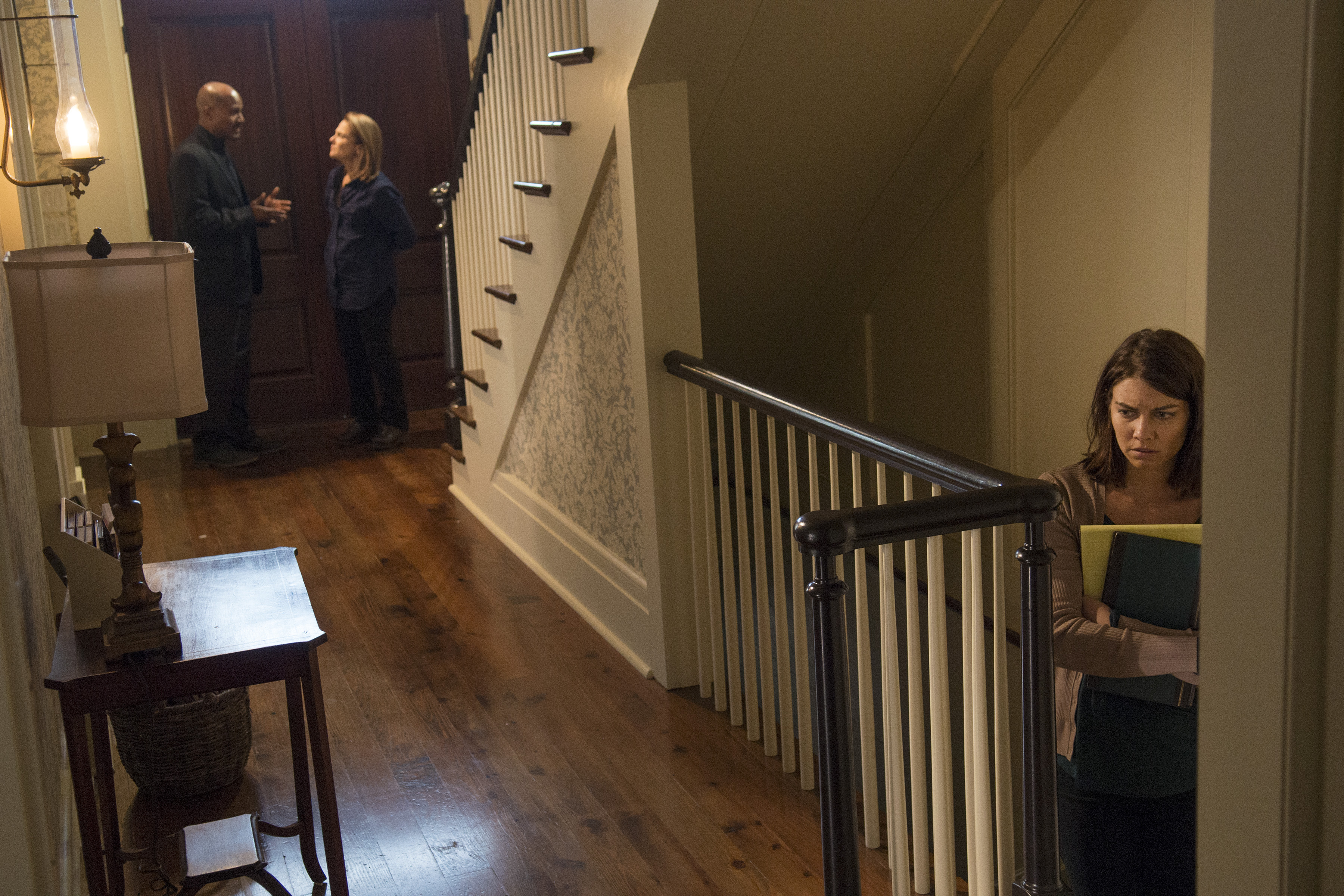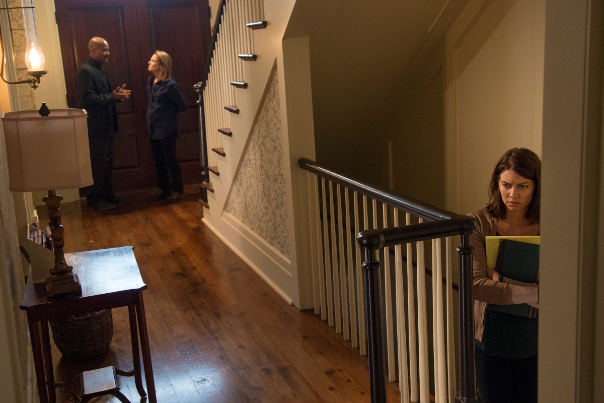 Seth Gilliam as Father Gabriel, Tovah Feldshuh as Deanna Monroe and Lauren Cohan as Maggie Greene – The Walking Dead _ Season 5, Episode 14 – Photo Credit: Gene Page/AMC