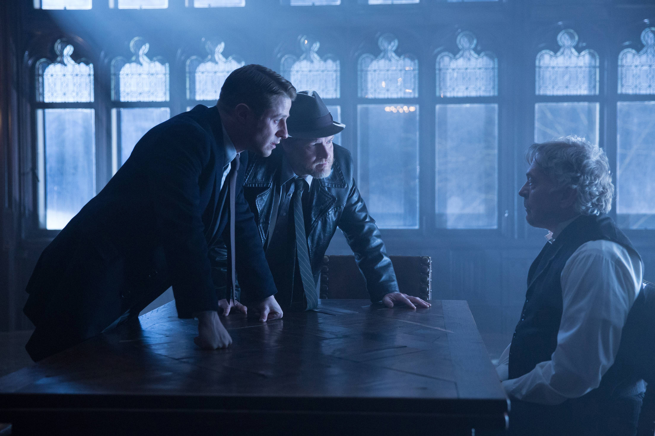 GOTHAM: Gordon (Ben Mckenzie, L) and Bullock (Donal Logue, C) question Jacob Skolimski (guest star Daniel Davis, R) in the ÒUnder the KnifeÓ episode of GOTHAM airing Monday, April 20 (8:00-9:00 PM ET/PT) on FOX. ©2015 Fox Broadcasting Co. Cr: Jessica Miglio/FOX