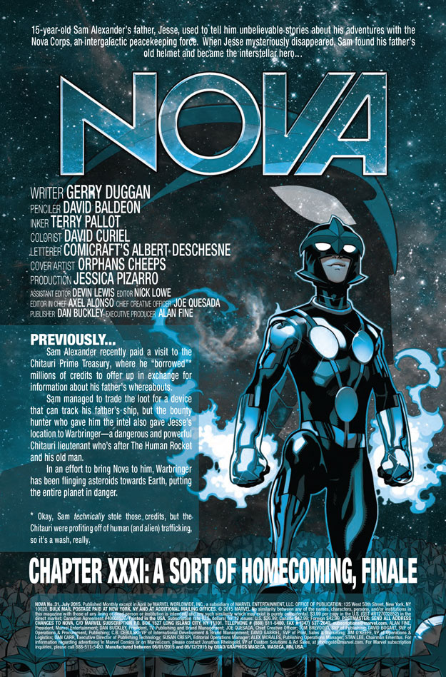 The world is under threat and it’s up to Sam Alexander, A.K.A. Nova, and his friends Beta Ray Bill, Doc Green, the Guardians of the Galaxy and Cosmo to save the planet. You won’t believe the end of this issue!
