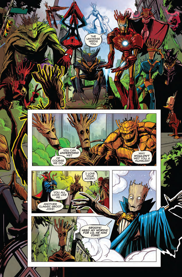 STRANDED, and without anyone who can understand what’s coming out of his mouth, it’s Groot vs The Cosmos in a trek to get his best friend back! Featuring a special guest star who’s REALLY OUTTA THIS WORLD! Groot may look intimidating, but, trust us, he’s all bark!