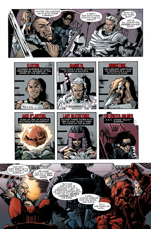 One of the most vile villains of the Marvel Universe gets his very own twisted Secret Wars series! Red Skull should be dead but his legend grows, so a team of villains that includes Winter Soldier, Magneto and Lady Deathstrike are sent on a dangerous odyssey to the Deadlands to prove it…but no one ever comes back alive from the Deadlands! Forced to overcome zombies, Ultron drones and the Annihilation Wave, the rag-tag team of villains will find that they may bitten off more than they can chew…