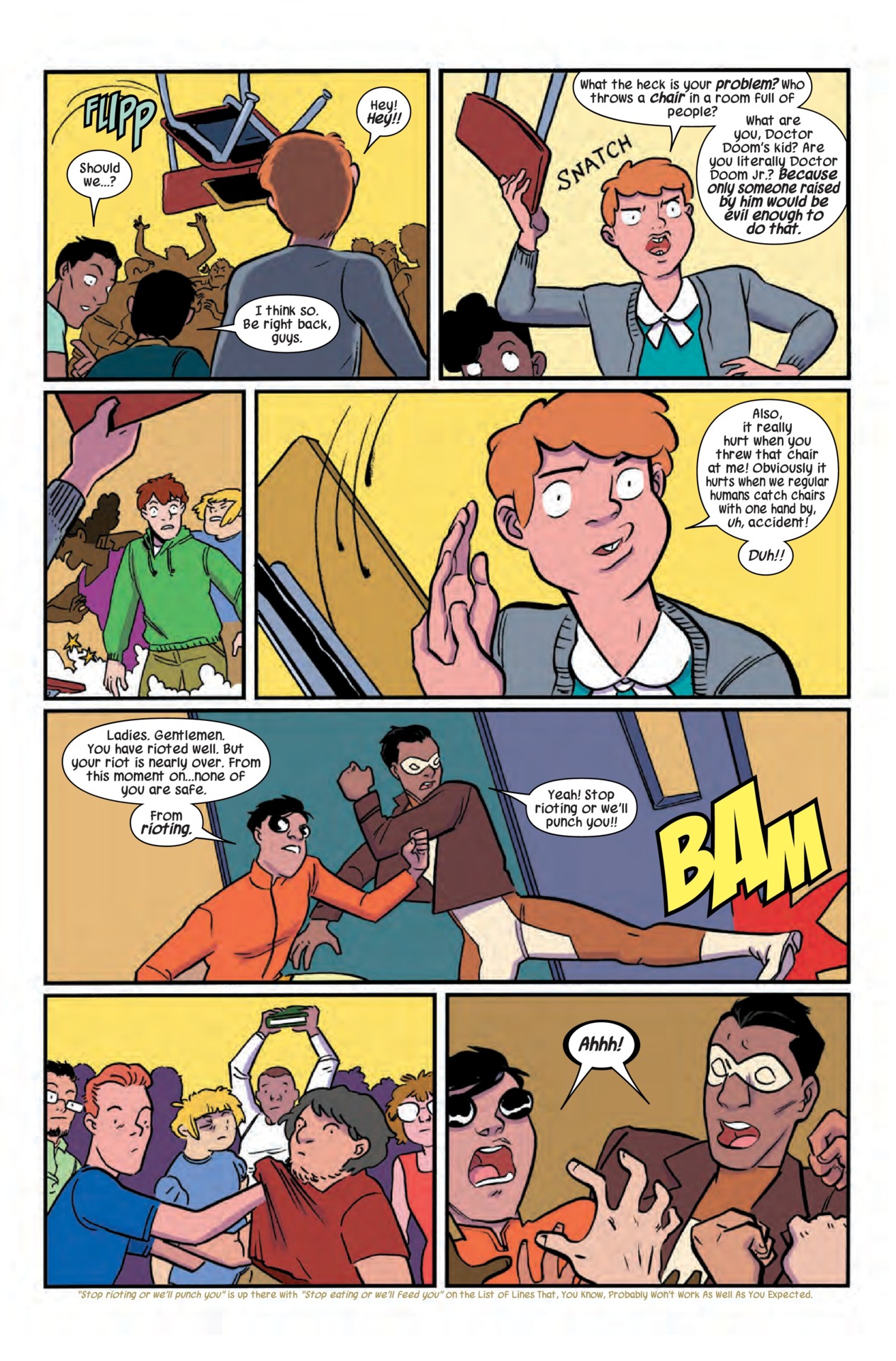 • Also: if you don’t care whether or not these two people like each other, perhaps me telling you that THE WORLD HAS GONE MAD AND SQUIRREL GIRL HAS TO FIGHT THE AVENGERS IN THIS ISSUE will attract your attention?