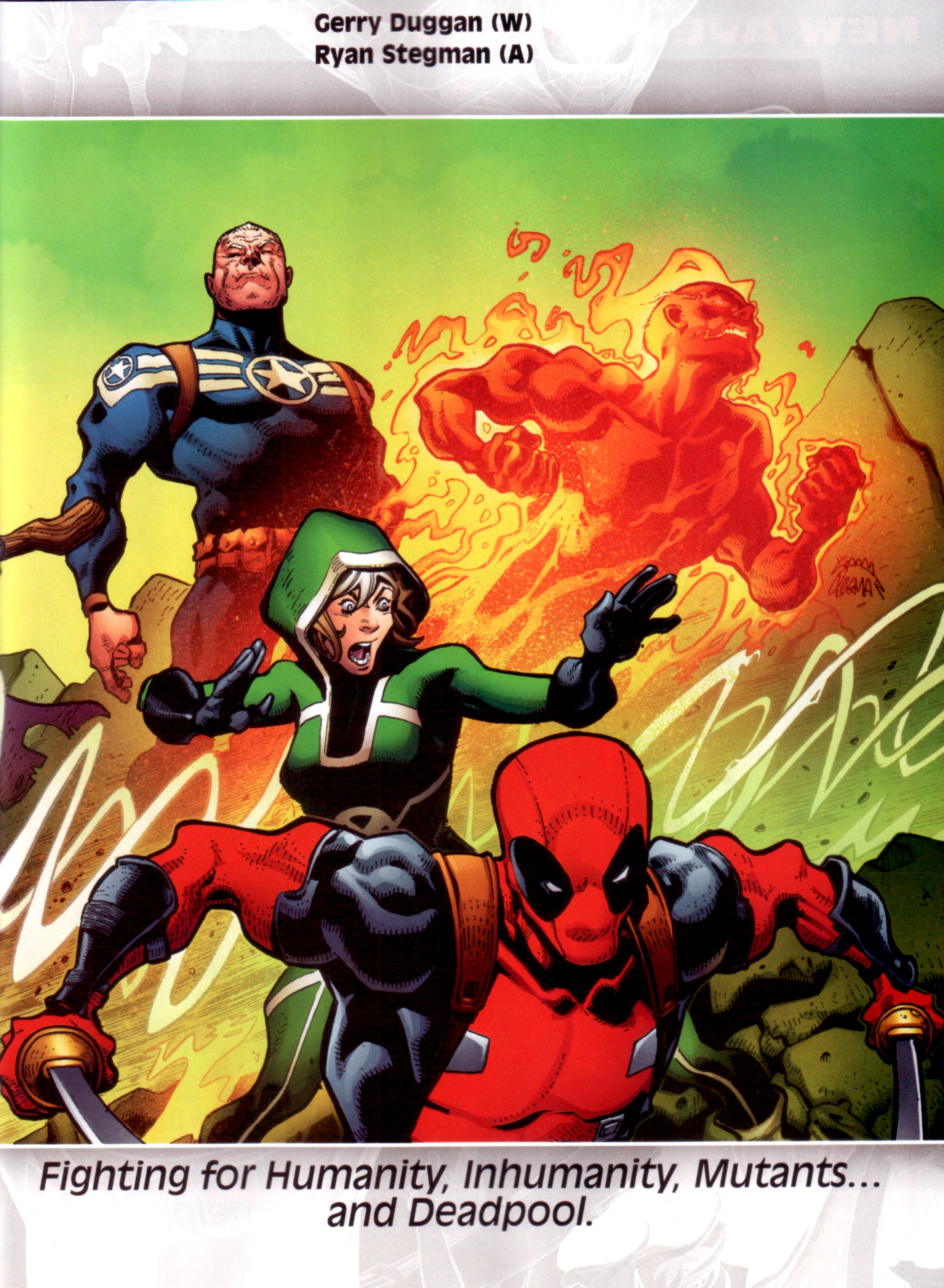 - Uncanny Avengers #1 W: Gerry Duggan A: Ryan Stegman “Fighting for Humanity, Inhumanity, Mutants…and Deadpool”