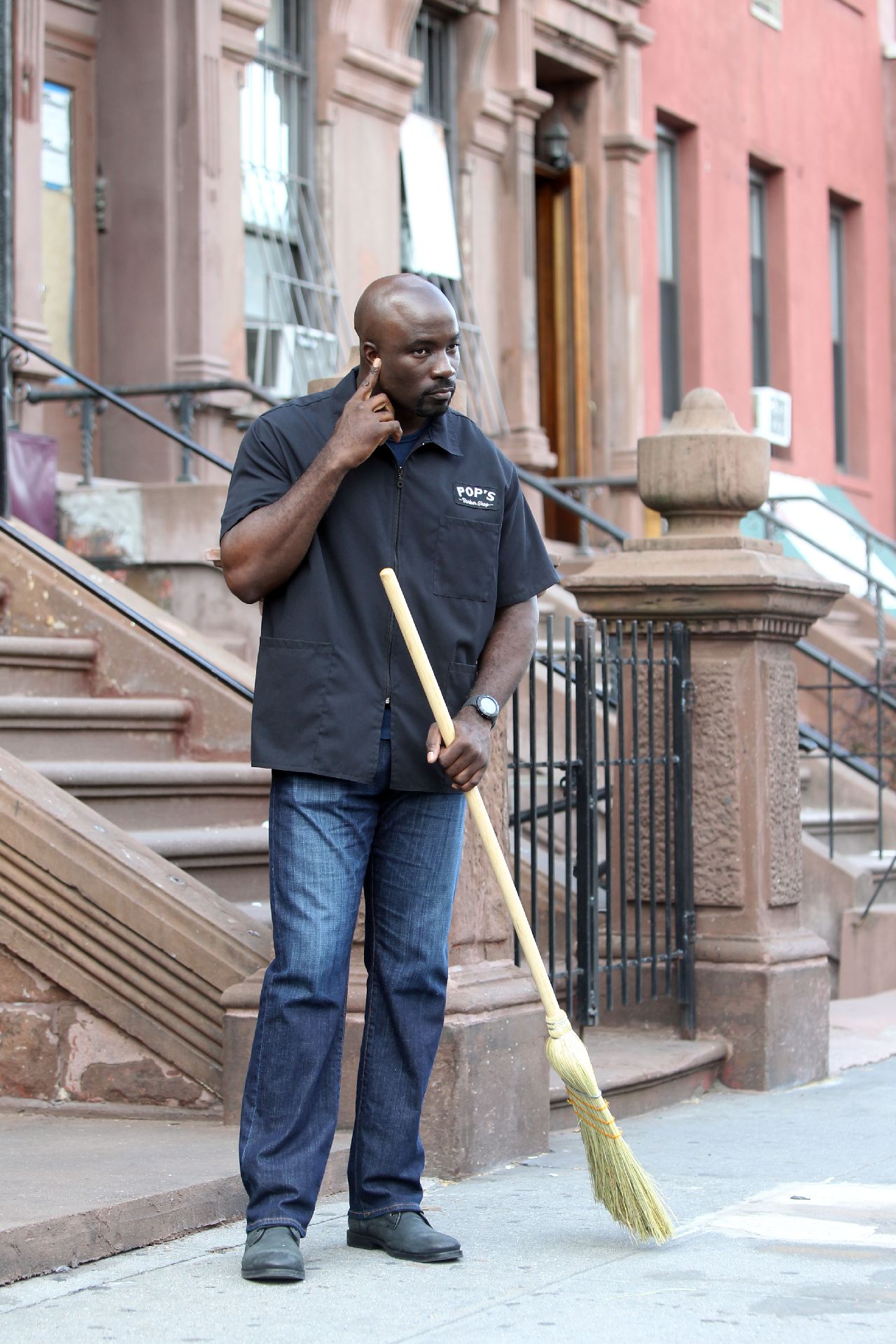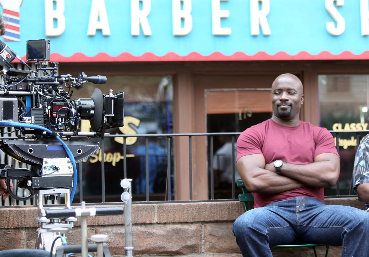ComingSoon.net has scored new photos from the set of Marvel’s ‘Luke Cage.’ In the photos, Luke Cage is sitting in front of a barbershop. The photos also reveals new cast member actor Frankie Faison (The Wire). It’s unclear what his role will be in the series. He could either be playing Cage’s dad or the owner of the barbershop.