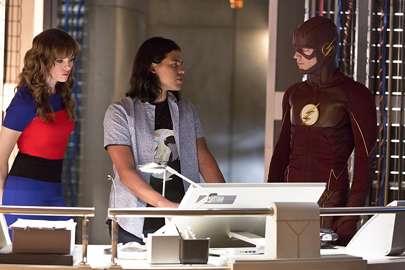 The Flash — “Family of Rogues” — Image FLA203a_0005b.jpg — Pictured (L-R): Danielle Panabaker as Caitlin Snow, Carlos Valdes as Cisco Ramon and Grant Gustin as The Flash — Photo: Jeff Weddell/The CW — é 2015 The CW Network, LLC. All rights reserved.