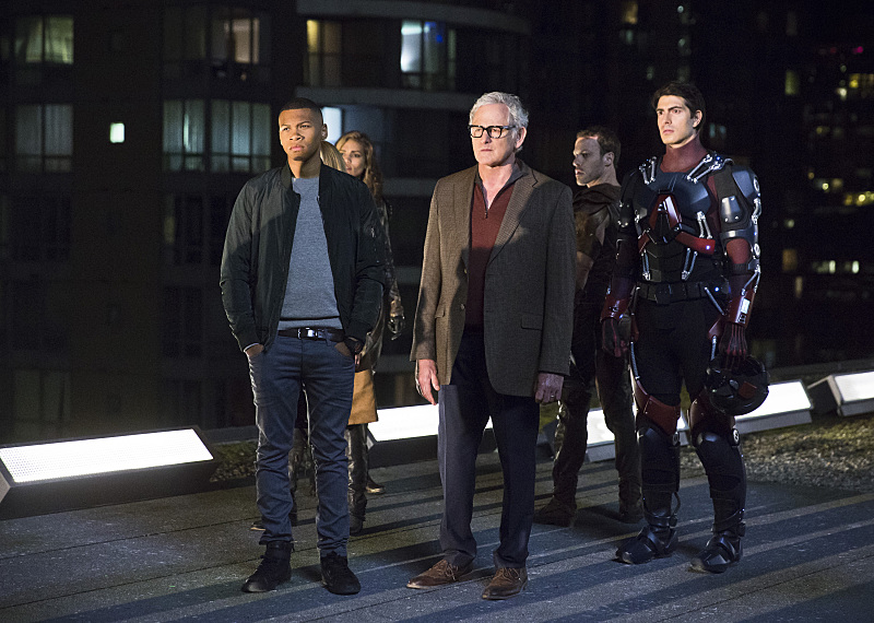 DC’s Legends of Tomorrow — “Pilot, Part 1” — Image LGN101d_0364b — Pictured (L-R): Franz Drameh as Jefferson “Jax” Jackson, Ciara Renee as Kendra Saunders/Hawkgirl, Victor Garber as Professor Martin Stein, Falk Hentschel as Carter Hall/Hawkman and Brandon Routh as Ray Palmer/Atom — Photo: Jeff Weddell/The CW — é 2015 The CW Network, LLC. All Rights Reserved