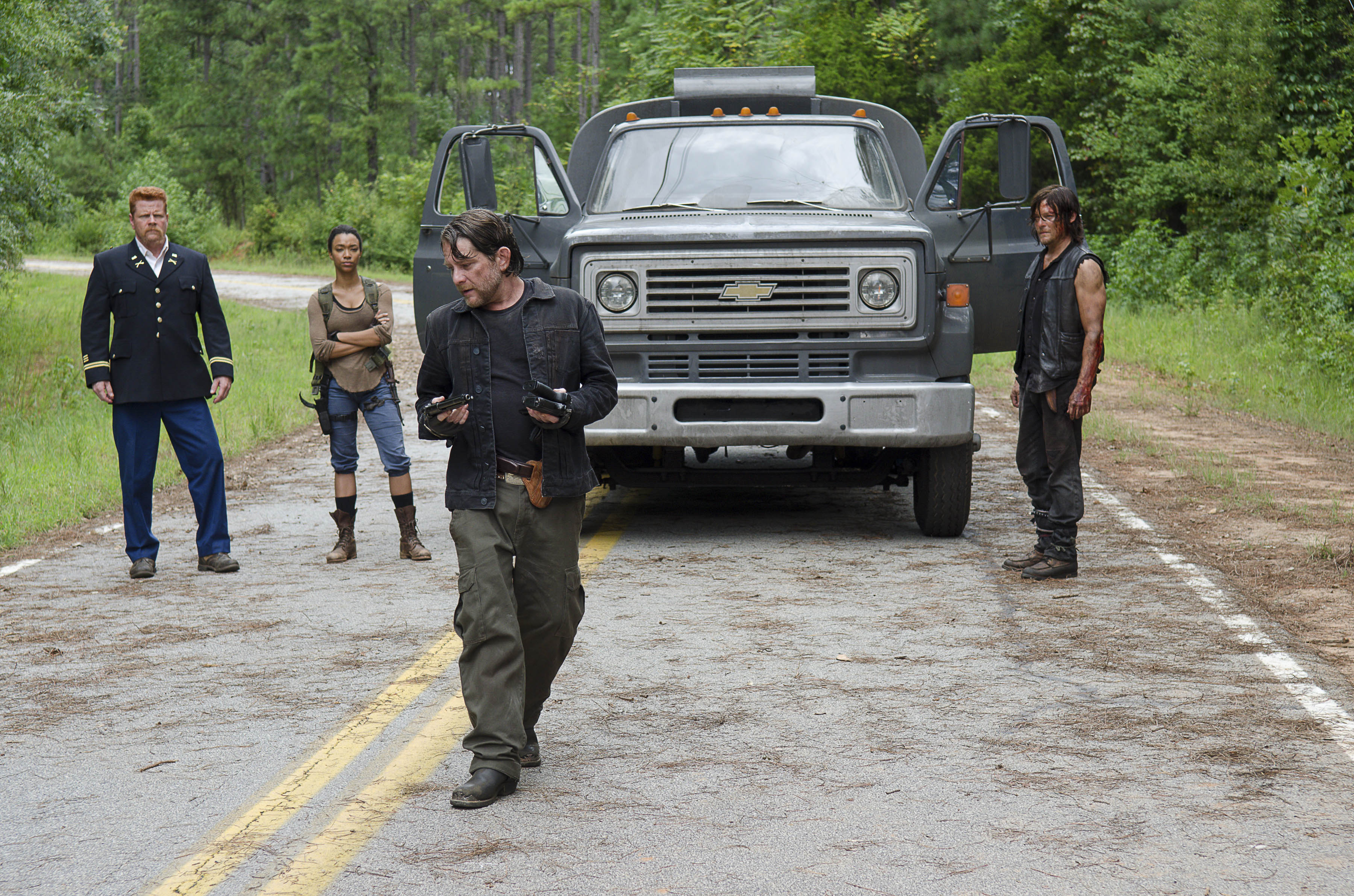 TWD_S06E09_No Way Out_Looking Back_Still (8) Previous Next Published February 15, 2016 at 3600 × 2384 in ‘The Walking Dead’ Season 6 – Looking Back on Episode 9, “No Way Out” [Stills] Michael Cudlitz as Abraham, Sonequa Martin-Green as Sasha, Norman Reedus as Daryl Dixon, and Christopher Berry as Biker – The Walking Dead _ Season 6, Episode 9 – Photo Credit: Gene Page/AMC